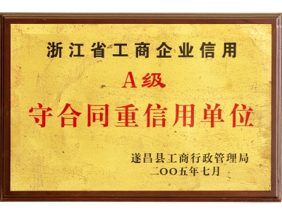 浙江省工商企業(yè)信用A級(jí)守合同重信用單位